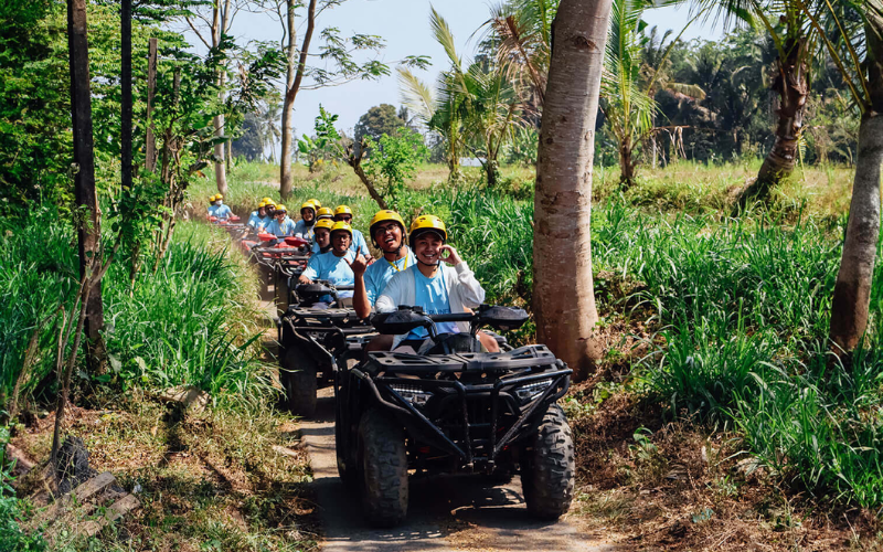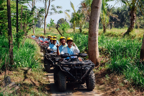 Dalam petualangan kita akan diajak mengexplore keindahan alam di Desa Bongkasa dengan naik kendaraan ATV melewati jalan jalan yang menantang. Kita juga akan melewati jalan turunan yang curam dan tanjakan yang akan menguji nyali kita. Tapi tidak usah khawatir mengenai keamanan, karena kita akan ditemani oleh seorang guide yang berpengalaman untuk memastikan wisata kita aman.
