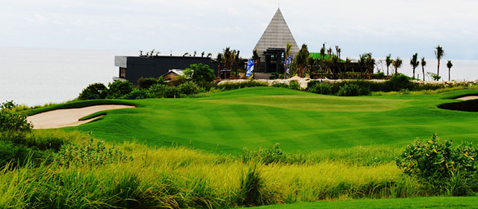 New Kuta Golf Bali- beralamat di Jalan Raya Uluwatu, Kawasan Pecatu Indah Resort Pecatu, Jimbaran, Kuta Selatan. Lapangan golf ini berada di atas bukit dengan pemandangan tebing-tebing terjal. Sehingga menyajikan pemandangan yang menabjukan membuat liburan anda berkesan.
